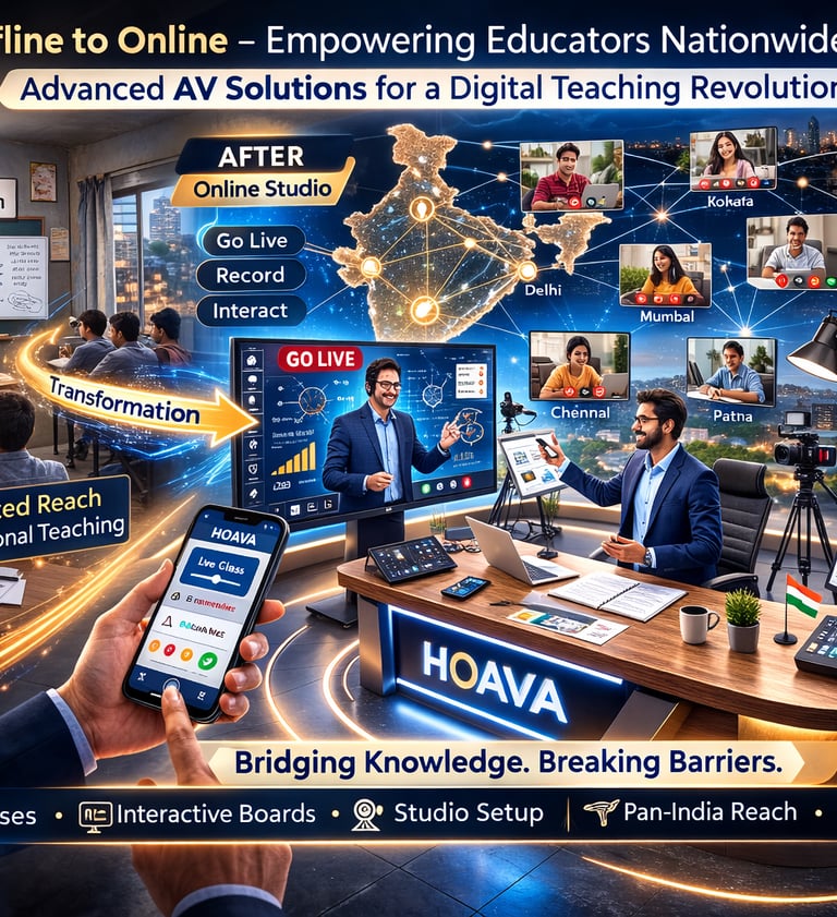 We enhance teacher–student interaction by integrating advanced Audio-Visual (AV) systems with traditional teaching methodologies. Our solutions create immersive, interactive, and future-ready learning environments — enabling educators to teach more effectively and students to engage more deeply.